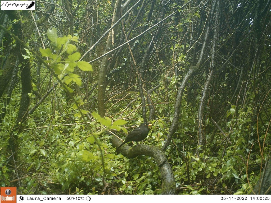 Amongst the species that call Badger Alley home, a number of birds nest along its length. During the 67 days my camera was observing this site, I captured evidence of 4 common non-native and native bird species. Amongst these, there were 6 sightings of pheasants released from a local shoot, all males strutting their stuff and showing off their bright breeding plumage. There were also 5 sightings of woodpigeons feeding, 3 sightings of blackbirds defending territories, and 1 sighting of a robin carrying food in its beak. These are just a few of the birds that frequent Badger Alley.